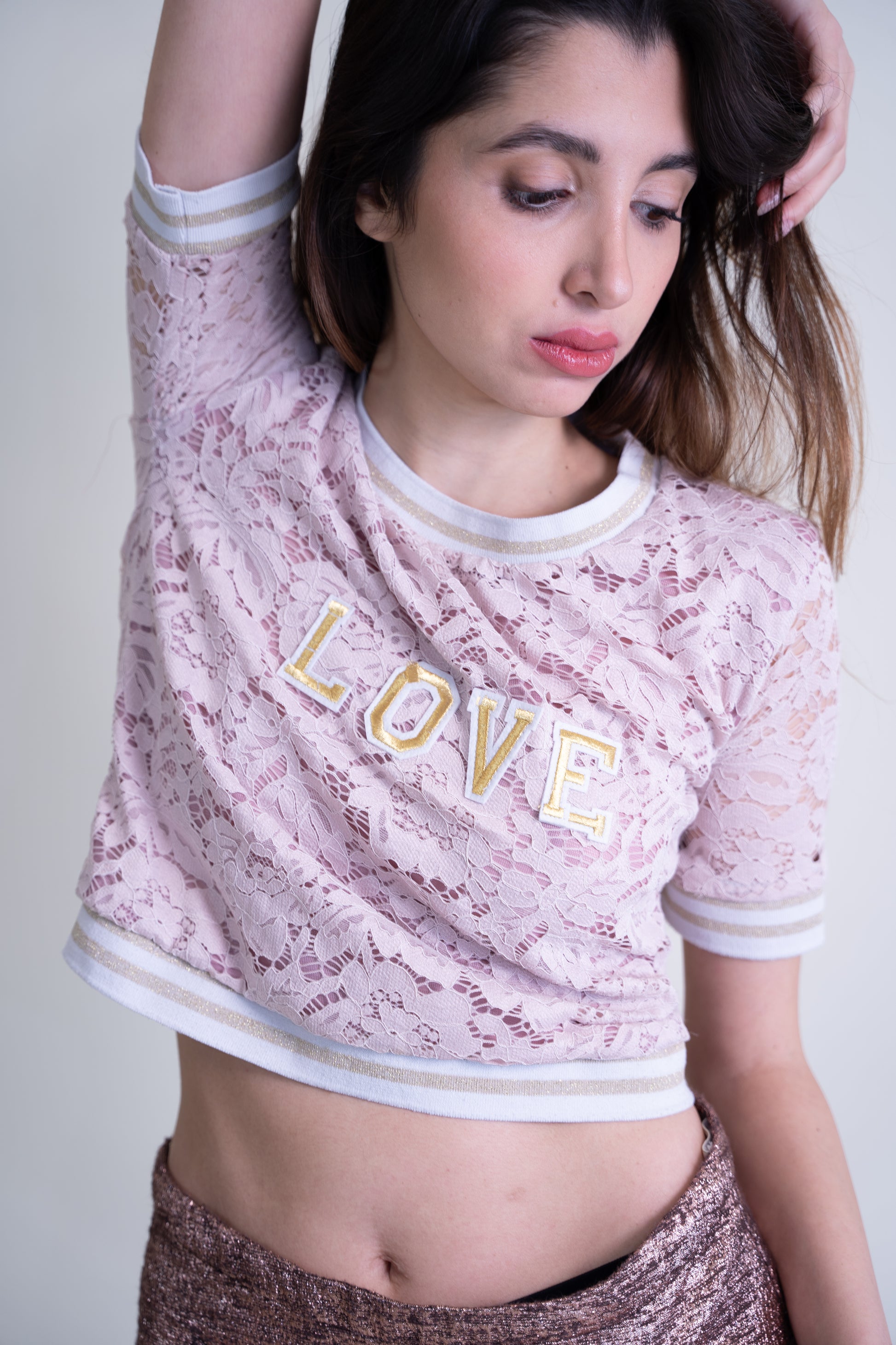 We took two vintage garments and transformed them into a sophisticated and sustainable two-piece set, redefining elegance with an upcycled touch. This Parisian-inspired ensemble consists of a delicate cropped top with intricate lace and embroidery, paired with a matching high-waisted skirt featuring handcrafted detailing.